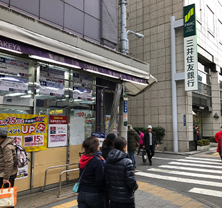 ・昭和通りと春日通りのが交わる『台東四丁目交差点』付近、多慶屋と三井住友銀行の間を御徒町台東中学校方面へ入り、約50mほど進んだ左側の建物1階部分が店舗となります。