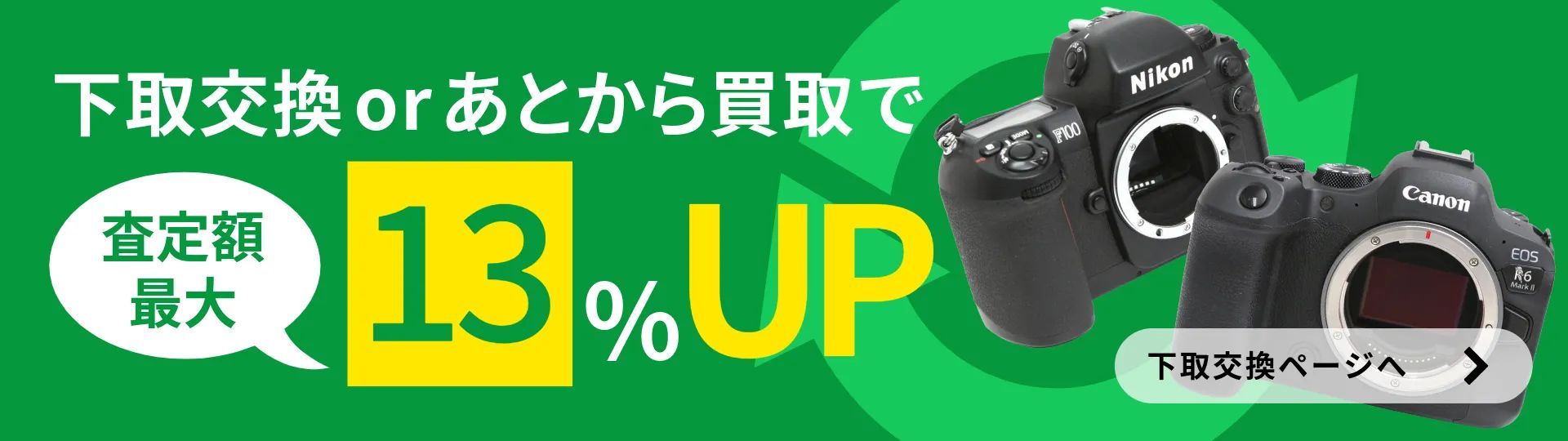 現在、アールイーカメラでは下取交換、あとから買取で査定額最大13%UPとなっています。この機会にお持ちの処分に困っている古いカメラを査定してみませんか?ぜひ、お気軽にお問い合わせください!